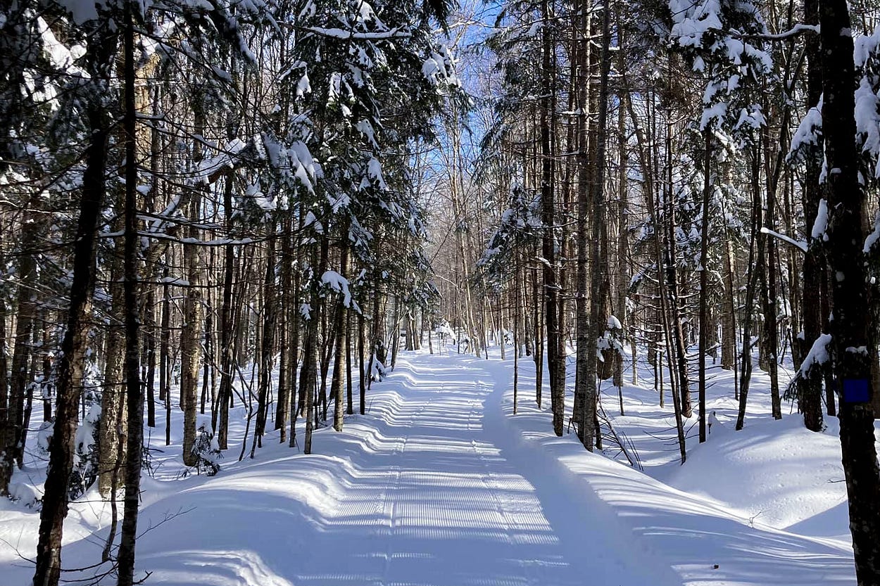 50 kilometers of groomed woodland trails—no fee and free loaner gear this weekend
