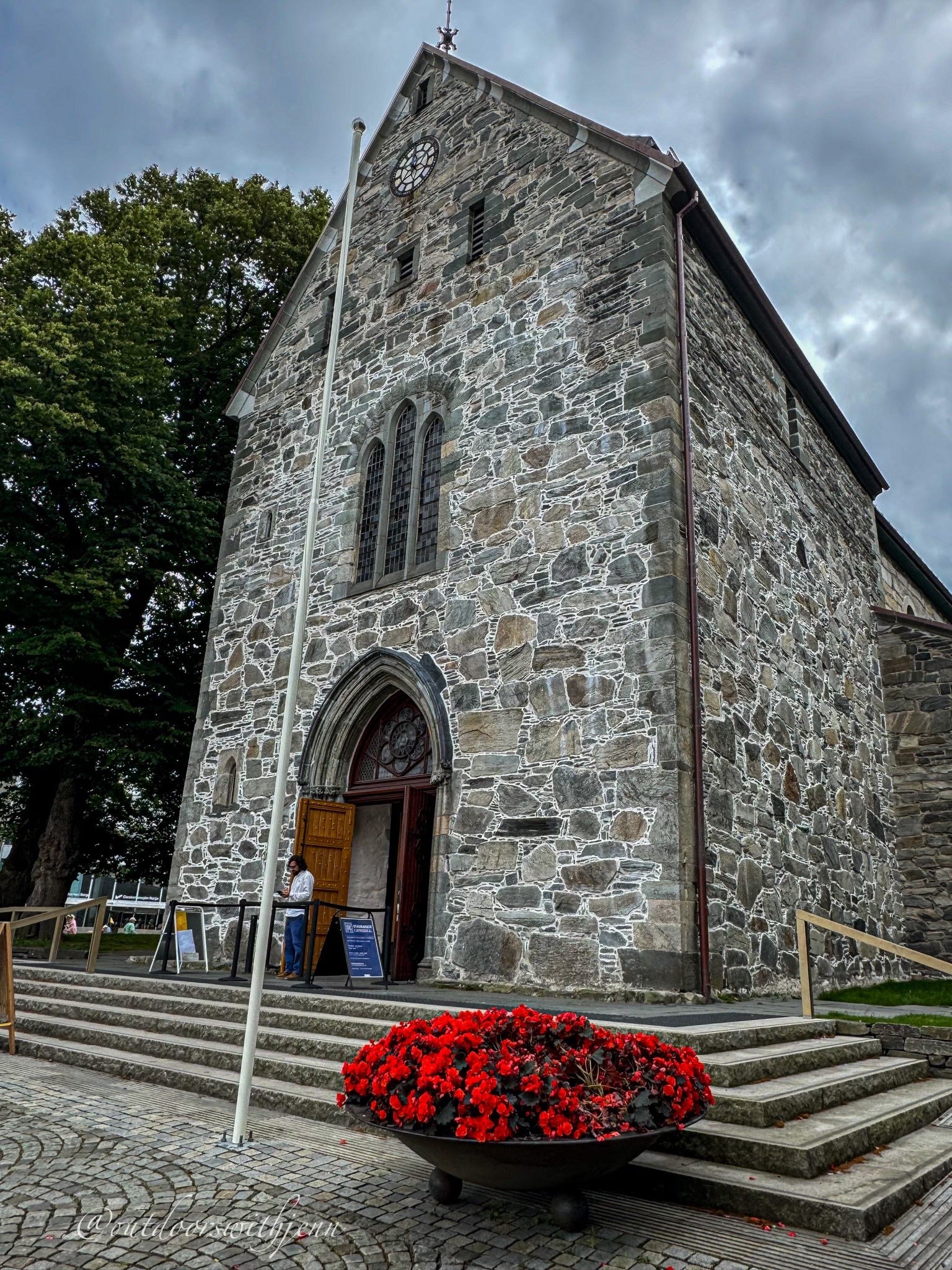 The oldest and still functioning cathedral in all of Norway - also known as St. Swithun’s Cathedral. I fell in love with the colors of the stone and the bright red flowers sitting just off the steps. The doors were open and people were coming and going into the church.