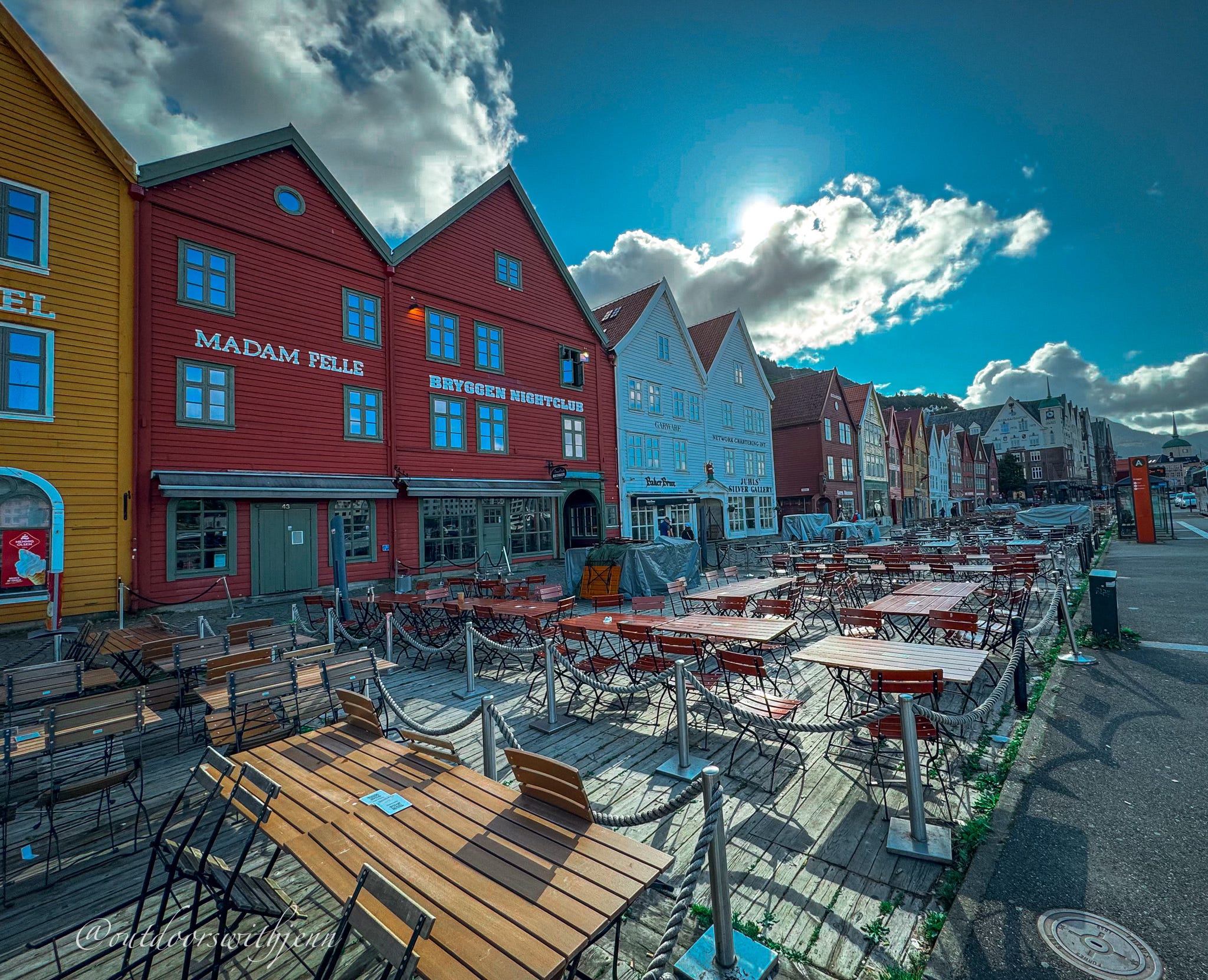 The first photo (above) was taken in the early morning hours on July 27, 2025. The view is of Bryggen, the historic (and very popular) waterfront district of Bergen and an UNESCO World Heritage site.