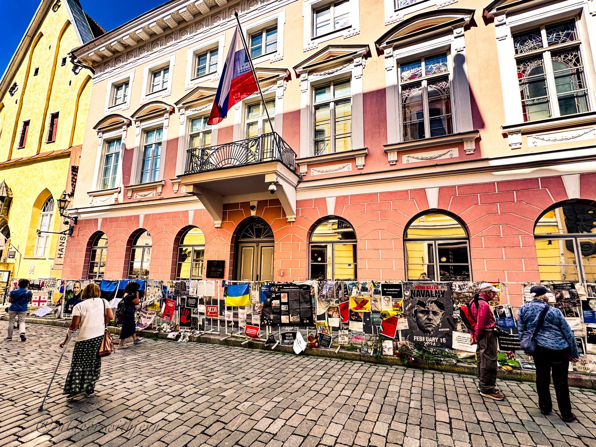 Story behind the photo: the Russian Embassy in Tallinn, the capital of Estonia, is not popular with the citizens of Estonia. A barricade is permanently placed in front of the embassy. Numerous posters are attached to the barricade. The Estonian people are fiercely independent today - after enduring a long history of outside rule.